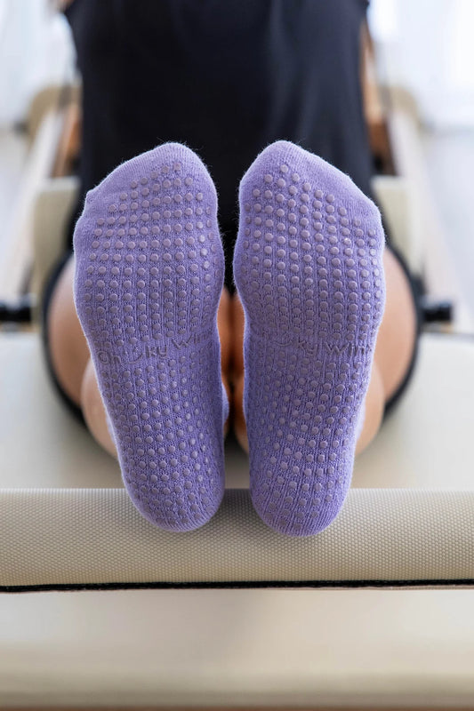 Crew Purple Striped Grip Socks