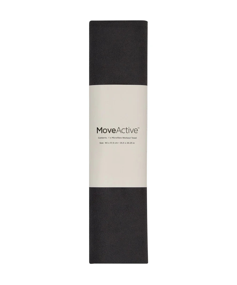 The MoveActive Workout Towel in Black is the ultimate accessory for every workout. This larger-sized towel combines style and functionality to enhance your fitness routine, keeping you dry during intense workouts with its absorbent microfibre fabric.